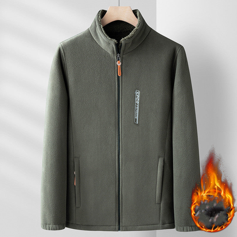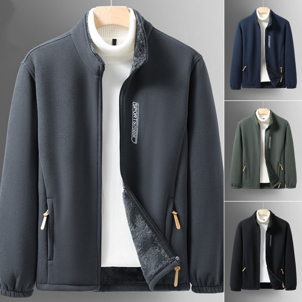 Męska kurtka polarowa (XL-6XL), ze stójką, zapinana na zamek, luźna i wygodna.