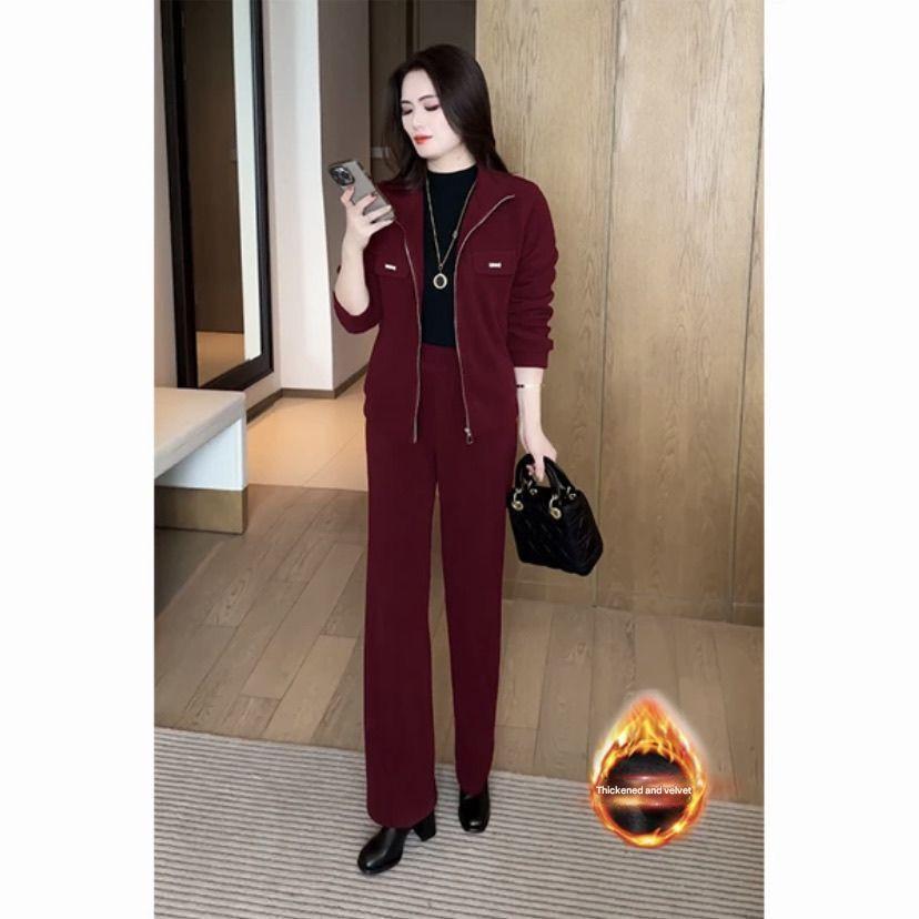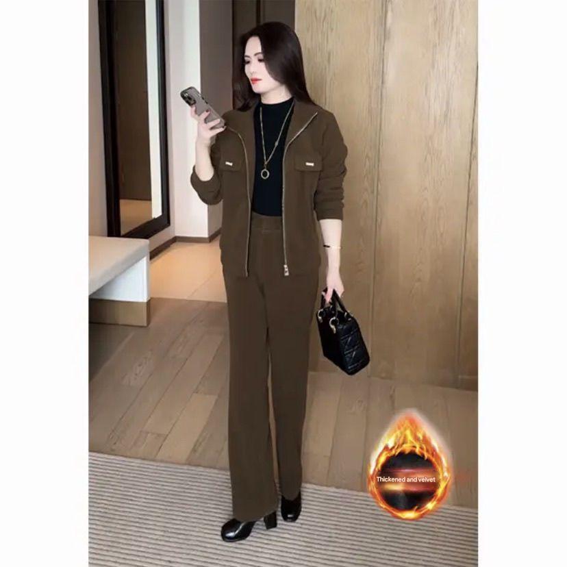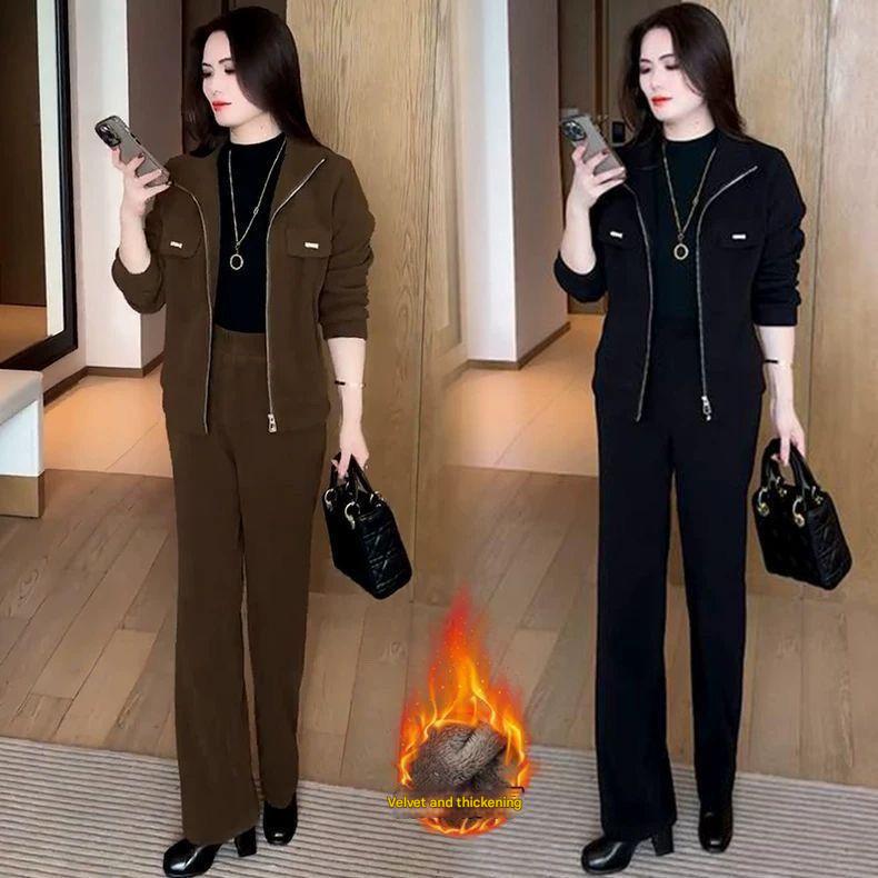 šćPantaloni + Jachetaćš„Nou costum de iarnÄ din catifea Ć®ngroČat din douÄ piese pentru femei