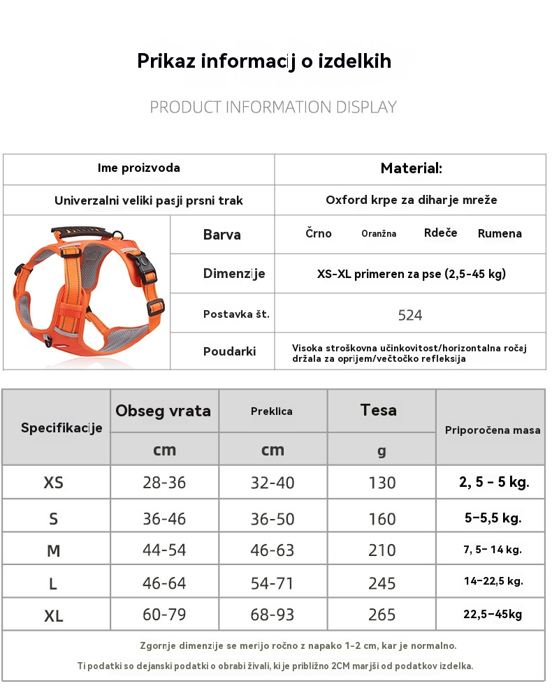 🐶【2.5–45 kg+1,5-metrska vrv】Nova odsevna oprsnica za pse, proti pobegu, primerna za sprehode na prostem.